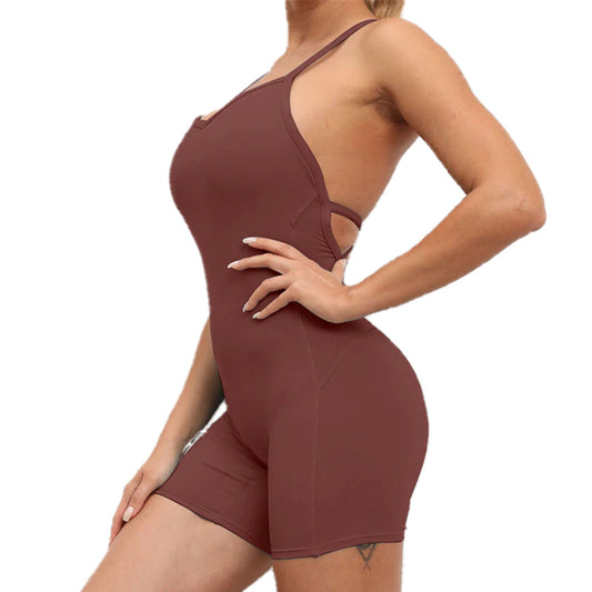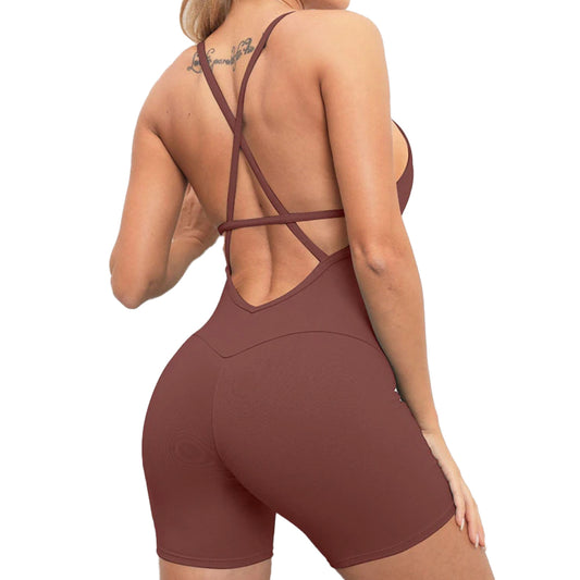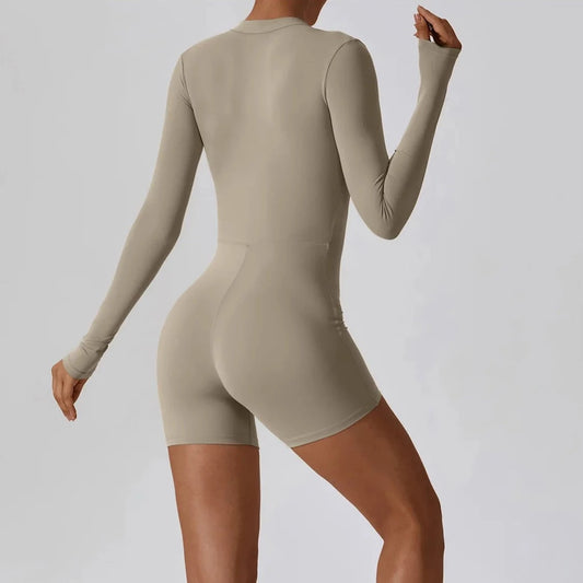 Baller Babe Long Sleeve Zipper Bodysuit Shorts Brown