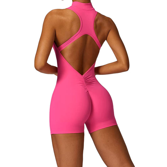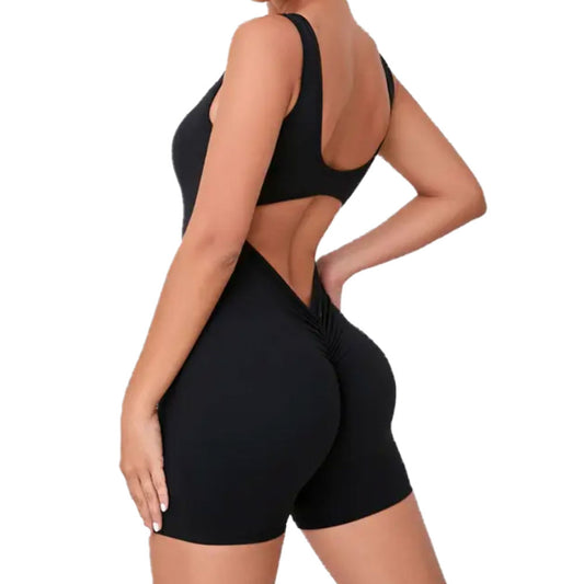 Baller Babe Halter Bodysuit Open Back V Scrunch Shorts