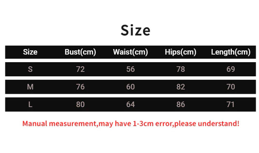 To select the right size for your gym bodysuit, consult our size chart. Every bodysuit outfit in our collection comes with a size guide, which includes measurements for women’s small (4-6), medium (8-10), and large (12-14) body sizes.