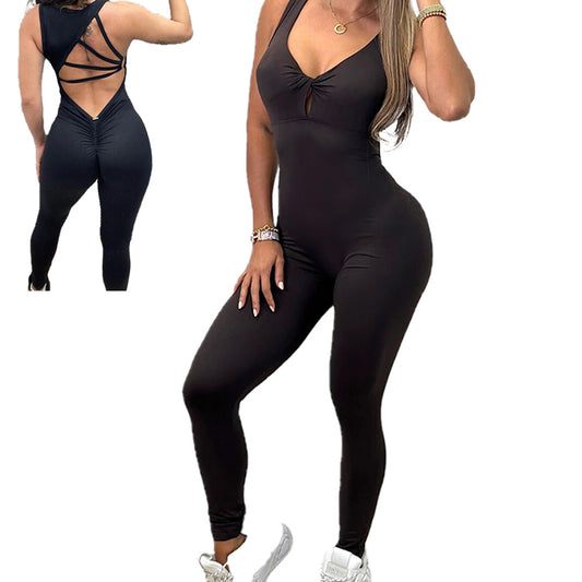 Baller Babe Halter Bodysuit Open Back V Scrunch Shorts