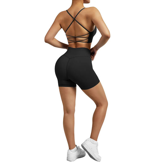 Baller Babe Tie up yoga bodysuit Shorts Jet Black