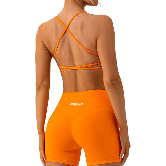 Baller Babe criss cross bra and shorts set Orange